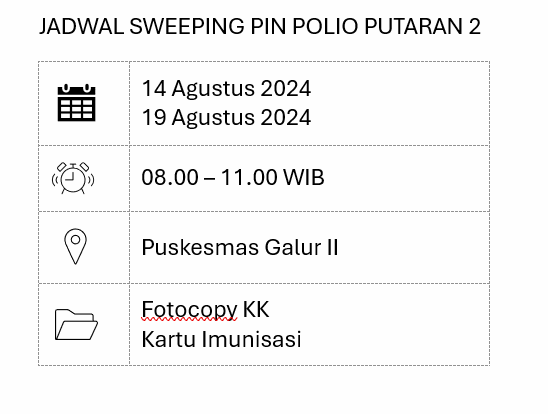 | 4 | 12 Agustus 2024 | Jadwal Sweeping PIN Polio Putaran 2 Tahun 2024