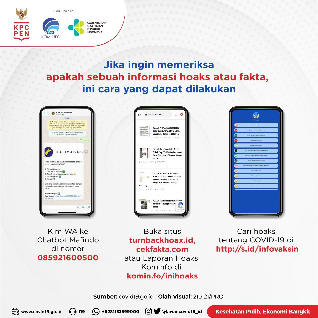 Di tengah pandemi yang terjadi saat ini, kerapkali kita mendapati pesan berantai yang beredar di media sosial, baik dari Facebook, grup Whatsapp, maupun website, yang pesan tersebut belum tentu dapat dipertanggungjawabkan atau terbukti kebenarannya (hoax).